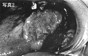 写真1は顎骨周囲炎、写真2は舌癌です。